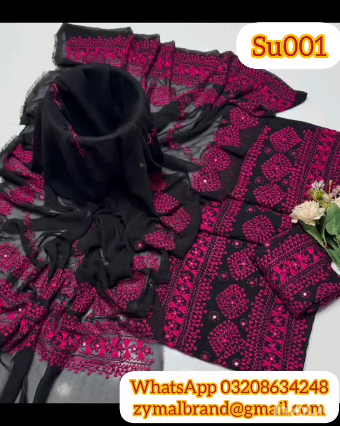 🌸 Fabric: Shfoon jarjet godi gall work Shirt with 4 border gall dupatta, 2pcs Dress🖤