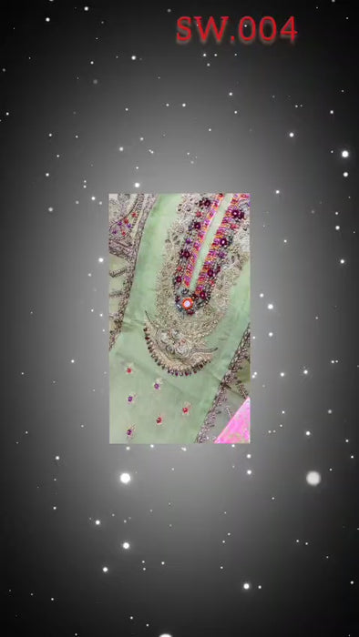 Zymal Brand SW004 | Fancy Organza Tilla Mirror Sitara Work 3-Piece Suit (Multi Dupatta)